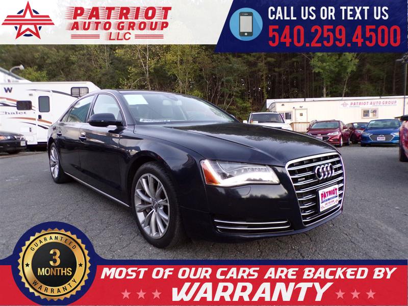 2013 AUDI A8 L 3.0L ONE OWNER IN GREAT SHAPE INSIDE AND OUT LOADED WITH; **Sunroof/Moonroof**,**Leather Interior**,**BACKUP CAMRA**,**BLUETOOTH CAPABLE**, **AUX JACK**, **WEEKLY SPECIAL**, **NEW OIL CHANGE**, **VA INSPECTED**, **CARFAX CERTIFIED**, **SERVICED** BACKED BY WARRANTY AT OUR FIRM ASKING PRICE PLUS $399 PROCESSING FEE. Internet Prices are based on cash or cashier's check. Our Internet price does not include a $399 Processing fee, Tags, title and FINANCE FEES!